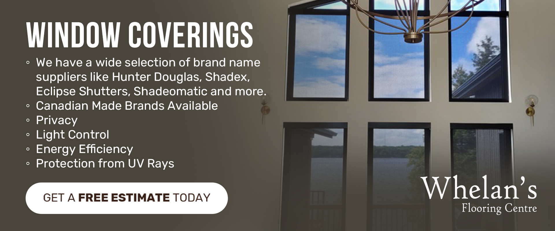 Founded in 1985 as a subsidiary of Whelan’s Flooring Centre, Whelan’s Window Coverings has grown into the premier destination for custom window coverings in Peterborough, Lindsay, and the Kawarthas. With one of the area’s only full-featured showrooms, we offer an exceptional opportunity to explore a wide range of custom products, styles, and ideas to enhance your home.